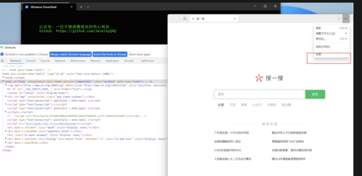 ## 支持版本列表 | Windows 微信版本 | 小程序版本 | 是否为最新版 | | ---------------- | ---------- | ----------------- | | 3.9.10.19_x64 | 9129_x64 | ✅ | | 3.9.10.19_x64 | 9115_x64 | ✅ | | 3.9.10.19_x64 | 8555_x64 | ✅ | | 3.9.10.19_x64 | 9105_x64 | ✅ | | 3.9.9.43_x64 | 8555_x64 | ❌ | | 3.9.9.43_x64 | 9079_x64 | ❌ | | 3.9.8.25_x64 | 8531_x64 | ❌ | | 3.9.8.25_x64 | 8529_x64 | ❌ | | 3.9.8.25_x64 | 8519_x64 | ❌ | | 3.9.8.25_x64 | 8501_x64 | ❌ | | 3.9.8.25_x64 | 8461_x64 | ❌ | | 3.9.8.25_x64 | 8447_x64 | ❌ | 不同版本微信下载; > https://github.com/tom-snow/wechat-windows-versions ## 如何查看当前运行版本? ### windows    ### Mac > ps aux | grep 'WeChatAppEx' | grep -v 'grep' | grep "wmpf-mojo-handle" ## 使用方法 ### 开启小程序 F12 工具: > https://github.com/JaveleyQAQ/WeChatOpenDevTools-Python 只支持 windows 版本微信,运行前先启动微信运行前先启动微信(建议小号,别被封了。。。) 1、安装python3版本 2、下载WeChatOpenDevTools-Python或直接下载编译好的exeWeChatOpenDevTools_64.exe 安装依赖 > pip3 install -r requirements.txt 运行 > python main.py -x ### 开启微信内置浏览器F12 > python main.py -c